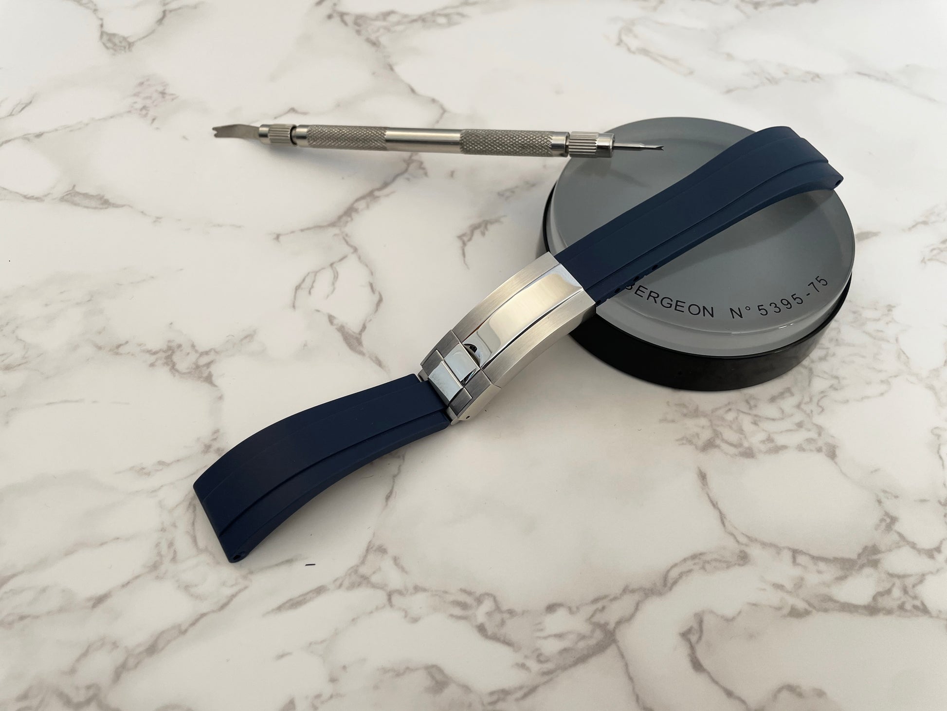 20mm Dark Blue Navy Rubber Strap w/ Silver Clasp for 40mm Sub Mod Case