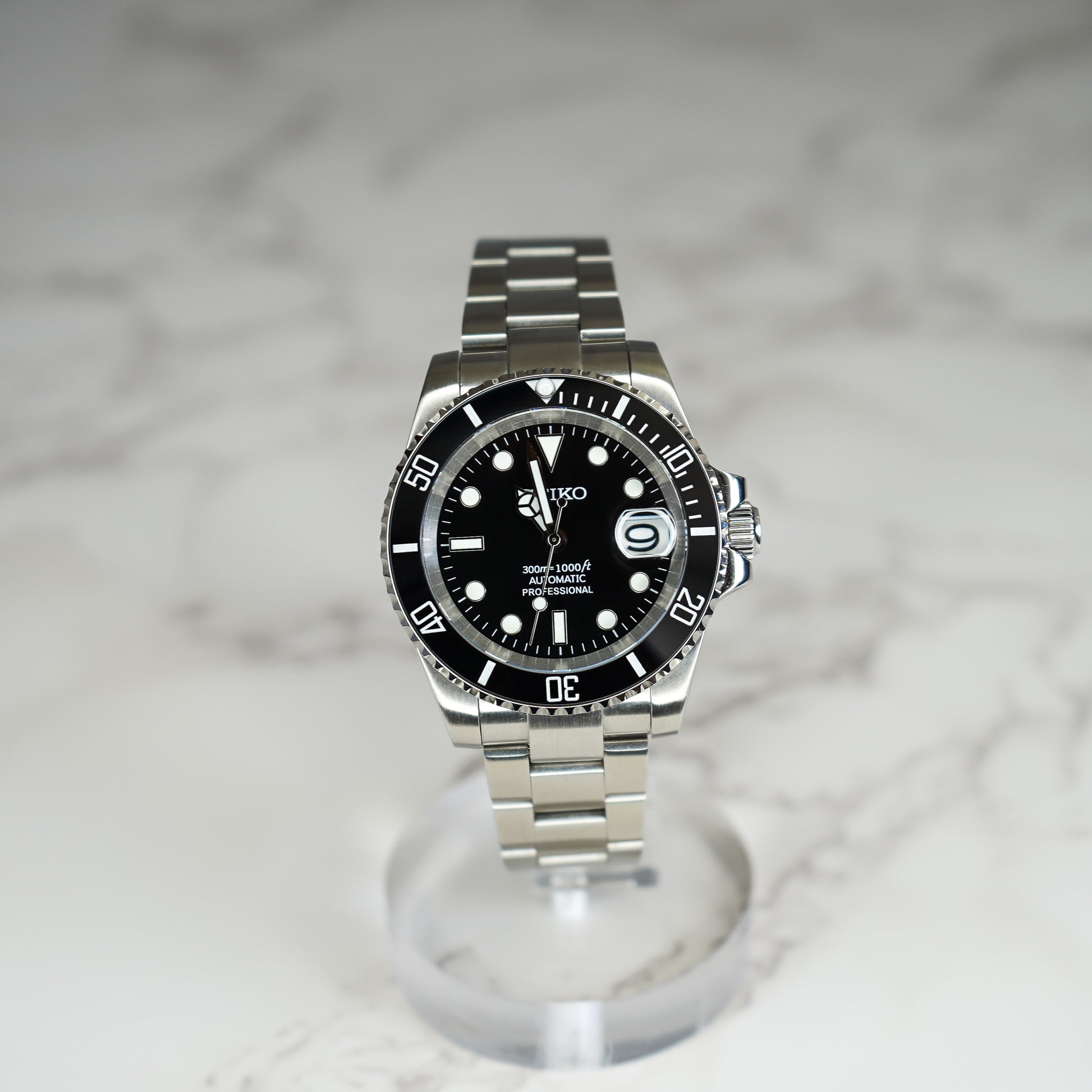 This watch is not manufactured by Seiko. Watch is a "Seiko Mod" composed of OEM and aftermarket parts which are disclosed in the "Parts List".