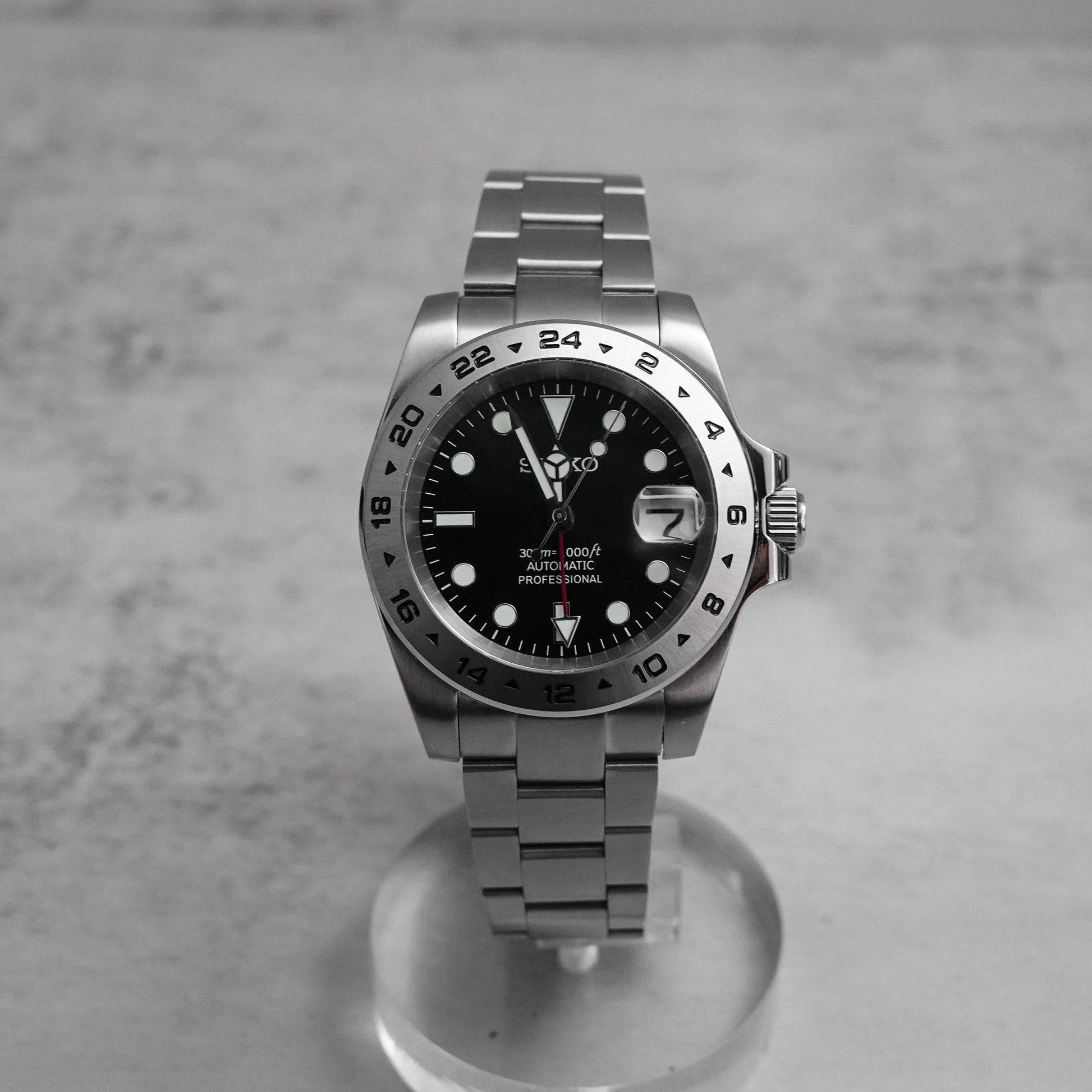 40mm Explorer II Black Dial Sub Style Diver Custom w/ Seiko NH34 GMT Movement Mod Watch SKX